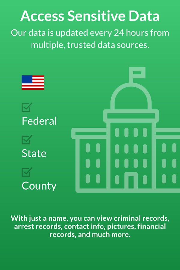 Просто указав имя, вы можете просматривать судимости, записи об арестах, контактную информацию, фотографии, финансовые отчеты и многое другое.