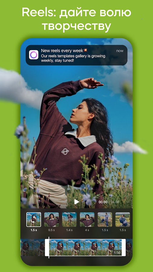 Для подготовки сторис не нужно регистрироваться или создавать учетную запись. Установив приложение на смартфон, вы сможете делать яркие публикации всего за несколько минут.