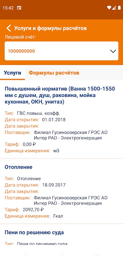 — Посмотреть подключенные услуги и формулы расчётов начислений по ним