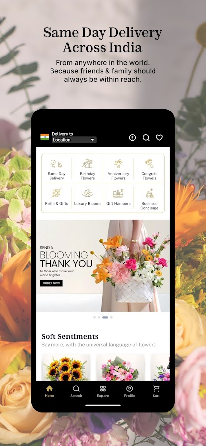 Добро пожаловать в приложение Интерфлора Индия! Ваш любимый онлайн-магазин доставки роскошных цветов теперь у вас под рукой. Готовы ли вы перейти на самое надежное приложение для цветов?