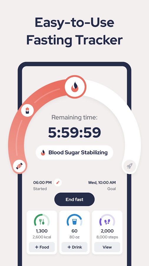 • Простой в использовании таймер голодания: запуск и завершение одним нажатием.