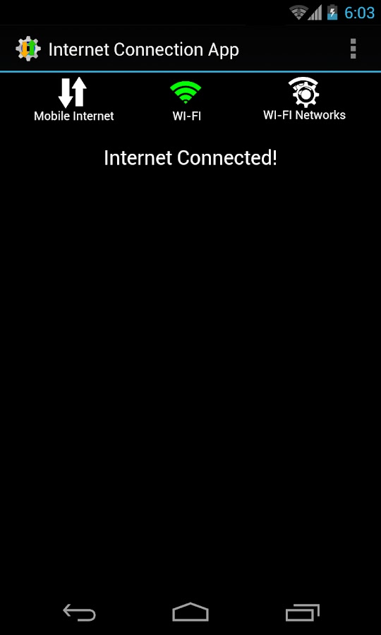 Это приложение позволяет проверить подключение к интернету: Wi-Fi, сети передачи данных и доступных WiFi сетей.