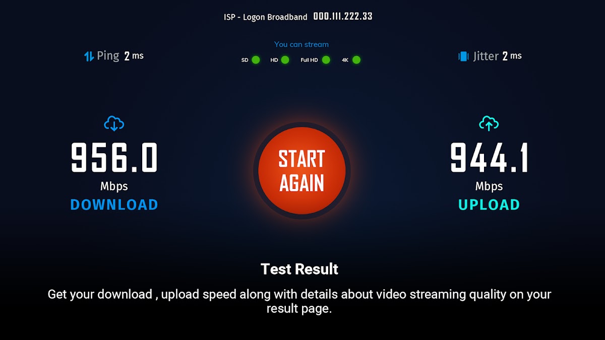 Проверьте свое интернет-соединение на Android Smart TV с помощью этого приложения Internet Speed Test.