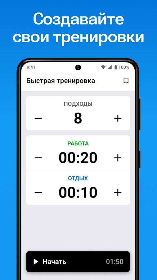 Каждое выполненное упражнение мотивирует вас на достижение более высоких целей. Получайте удовольствие и достигайте своих фитнес-целей с помощью интервального таймера.