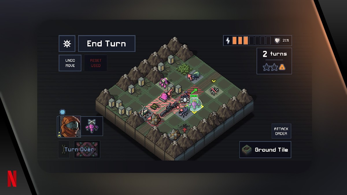 Только для пользователей Netflix с подпиской. Цивилизация под угрозой, но в ваших силах защитить ее. Возглавьте команду, чтобы спасти мир от внеземной угрозы в этой пошаговой стратегической игре. Остаткам человеческой расы угрожают гигантские создания, которые живут под землей. Тщательно выбирайте опытных пилотов и роботов в свой отряд для защиты Земли. Каждая попытка одолеть врага открывает перед вами новую задачу. Эту футуристическую боевую игру журнал PC Gamer назвал «Лучшей игрой 2018 года». Характеристики: • Защита городов. Гражданские объекты дают энергию вашим роботам. Защищайте здания от врага и следите за тем, куда стреляете! • Совершенствование стратегии. Все атаки противника телеграфируются в минималистичном, пошаговом бою. Анализируйте ходы врага и отвечайте на каждый из них продуманными действиями. • Создание идеального робота. Находите новое эффективное оружие и уникальных пилотов, отражая нашествия чудовищ на острова. • Второй шанс. Поражение не принимается. Если вы проиграли, отправьте в прошлое сообщение с просьбой о помощи и воспользуйтесь возможностью сделать всё иначе. • Дополнительные возможности в продвинутой версии. Новая расширенная версия игры с дополнительным оружием, роботами, пилотами, врагами, миссиями и т. д.