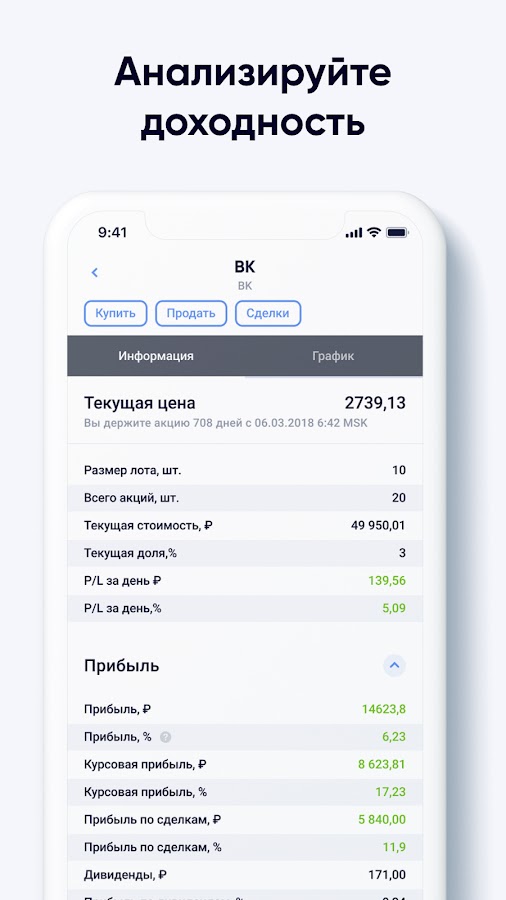 В разделе Аналитика можно узнать показатель инфляции и ставки по депозитам. Информация берется из открытых источников. Здесь же происходит сравнение годовой доходности по индексу ММВБ. Портфельная аналитика постоянно обновляется, появляются новые функции.