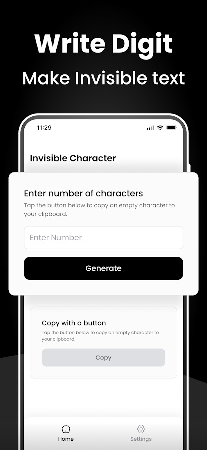Наше приложение «Невидимый символ» позволяет пользователям генерировать неограниченное количество пустых символов, которые можно «скопировать» и отправить друзьям. После создания пустого или невидимого текста его можно отправить в любом популярном мессенджере.