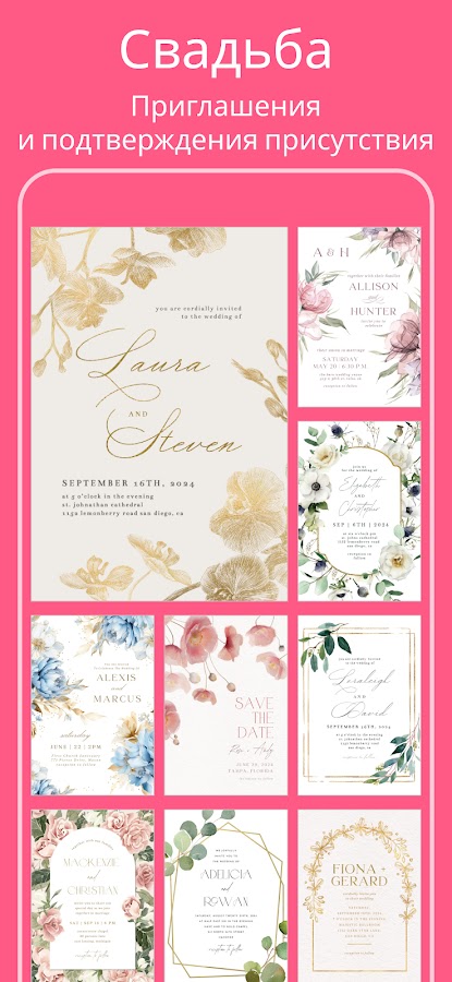 • Настройте свою открытку/ приглашение! Используйте настройки для редактирования текста, измените шрифты и выберите уникальные цветовые комбинации, которые наилучшим образом соответствуют вашему вкусу