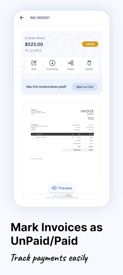 Скачайте приложение Invoice Generator — Zoho для Android бесплатно - последняя версия (4.5.15) уже доступна для установки на ваш телефон или планшет.