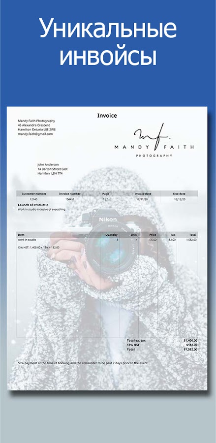 • Добавляйте фотографии при выставлении счета