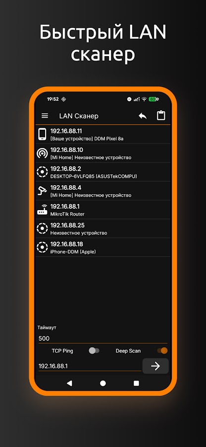 Приложение сочетает в себе самые популярные сетевые утилиты, которые обычно находятся на вашем настольном ПК. Такие нструменты помогут вам решить проблему с уровнем сетевого сигнала, Wi-Fi-маршрутизатором или оптимизировать сетевое соединение в домашней сети, когда вы находитесь за сотни километров от нее. Вы также можете включать или перезагружать устройства в домашней или корпоративной сети с помощью функции Wake on LAN.