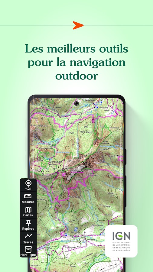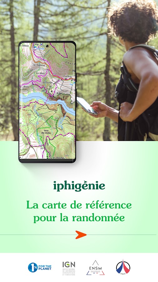 Ifigénie — это приложение с картами походов для любителей активного отдыха во Франции и по всему миру. Идеально подходит для частных лиц (туристов, трейлеров, велосипедистов, наездников…) и профессионалов (гидов, пожарных, геодезистов, летчиков, моряков и т. д.), которым нужны точные карты.