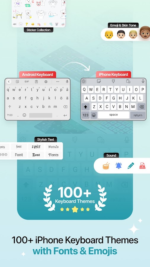 Android-приложение для смайликов на клавиатуре iPhone обычно предлагает такие функции, как поддержка смайликов и настраиваемые темы, которые позволяют использовать клавиатуру iPhone.