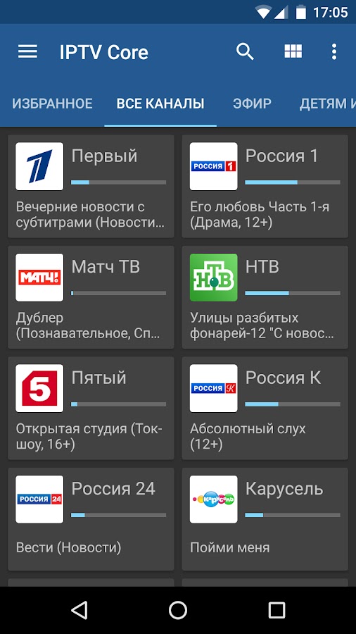 ✔ Отображение каналов в виде списка, сетки или плитки