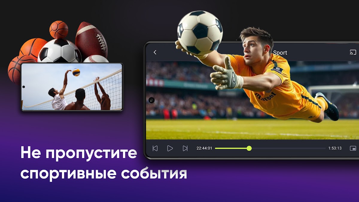 — Sport Events — напоминание о спортивных событиях: футбол, баскетбол, теннис, гандбол, хоккей, волейбол.