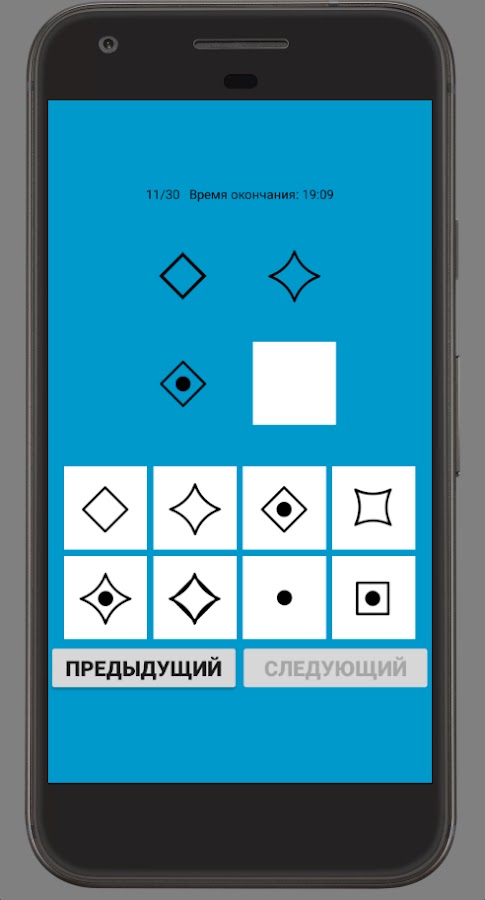Большинство тестов в этом приложении проводилось с помощью теста стандартных прогрессивных матриц.