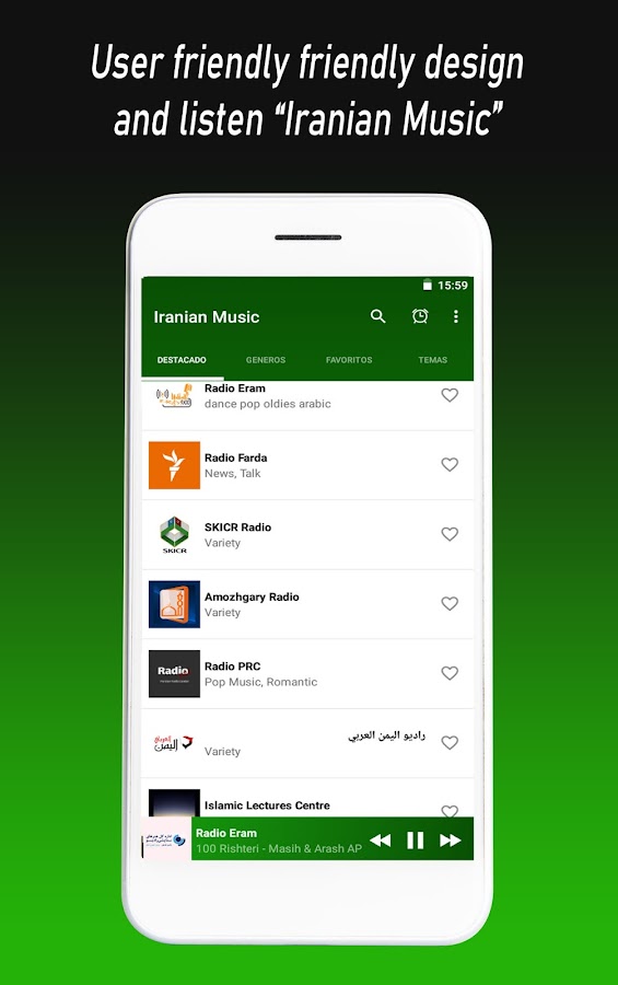 С приложением Iranian Music вы можете быстро и легко получить доступ ко всем иранским станциям. Вы можете слушать свою любимую иранскую музыку онлайн. Быстро, просто и эффективно