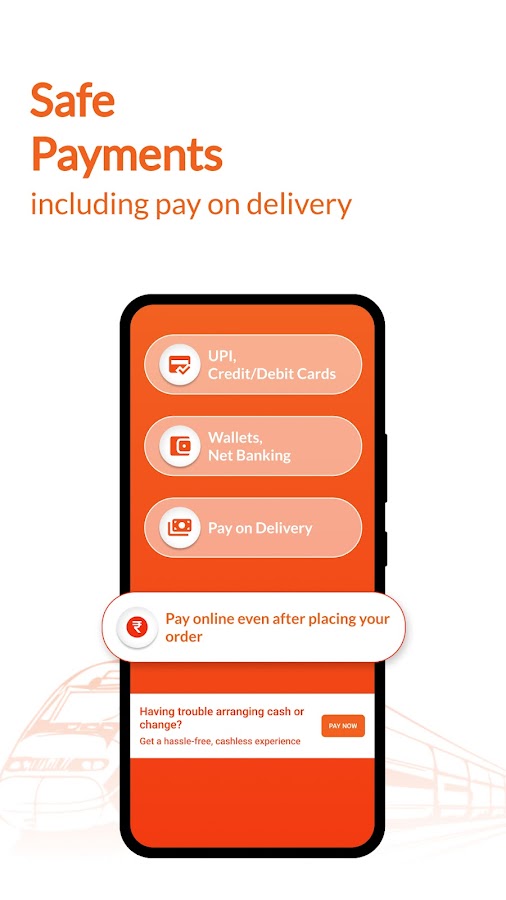 • Разместите онлайн-заказ еды в поезде всего несколькими нажатиями, и он будет доставлен прямо на ваше место в поезде с помощью нашего удобного приложения.