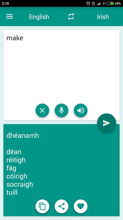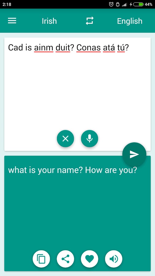 Это бесплатный переводчик может быстро перевести из ирландцев английский и с английского на ирландских (Gaeilge-Béarla aistritheoir) слов, а также полных предложений. Мгновенный перевод и полный действия из слов.