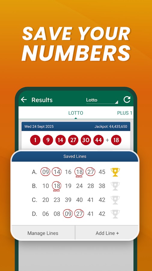 ★ Проверка билетов Lotto и EuroMillions — сохраняйте свои номера один раз и проверяйте их через несколько секунд после каждого тиража. Играете ли вы в Irish Lotto, EuroMillions или Daily Million, вы можете сохранять несколько строк и даже их части, если делаете ставку на результат. Пользователи PRO могут сохранять до 50 строк — идеально для лотерейных синдикатов.