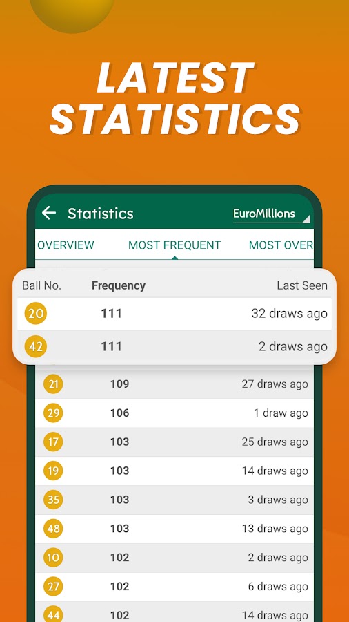 ★ Статистика лотерей — смотрите, какие номера Lotto и EuroMillions выпадают чаще всего или чаще всего. Отлично подходит для отслеживания тенденций и принятия обоснованных решений.