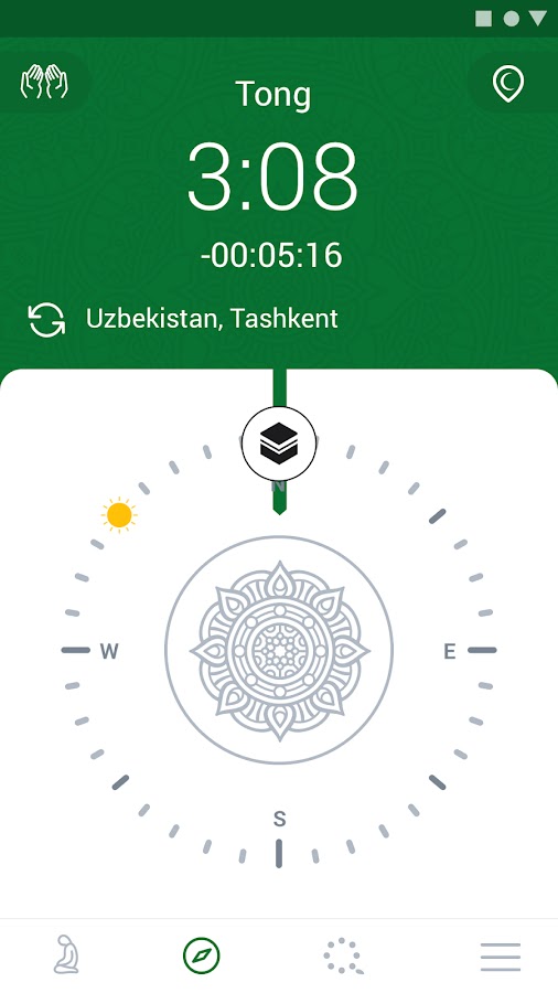 Qibla — Makka shahri joylashgan yo’nalishni aniqlab oling.