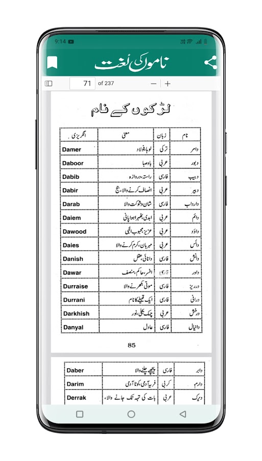После установки приложения «Исламское имя со смыслами» (ناموں کی لغت) вы можете прочитать самую большую коллекцию популярных мусульманских имен для новорожденных девочек и мусульманских имен для мальчиков со значениями урду и английским написанием. В этом приложении вы также можете прочитать более 5000 имен мусульманских мальчиков и более 5000 имен мусульманских девочек на языке урду со значениями. Эта большая коллекция популярных исламских детских имен и их значений подтверждена Мисбахи Алимом (имамом). Короче говоря, это приложение особенно полезно для родителей, чтобы найти значение исламского имени, которым они хотят назвать своего новорожденного ребенка.