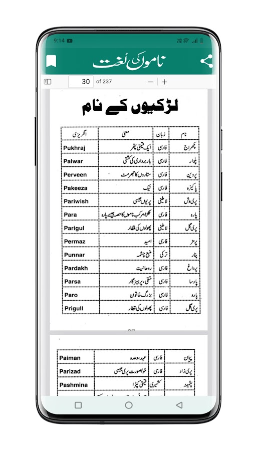 • До 10000 имен мальчиков и девочек на урду лагуна и английском языках.