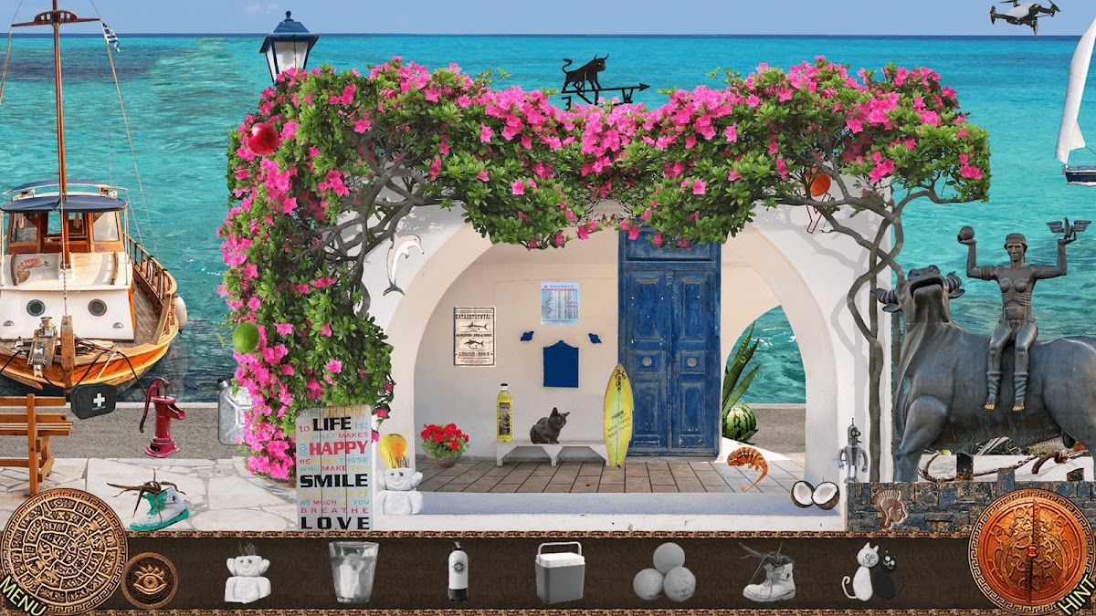 На острове Вас ждут невероятные приключения! Вместе с персонажами игры поиск предметов Вы найдете скрытые артефакты и наконец узнаете тайну Фестского диска.
