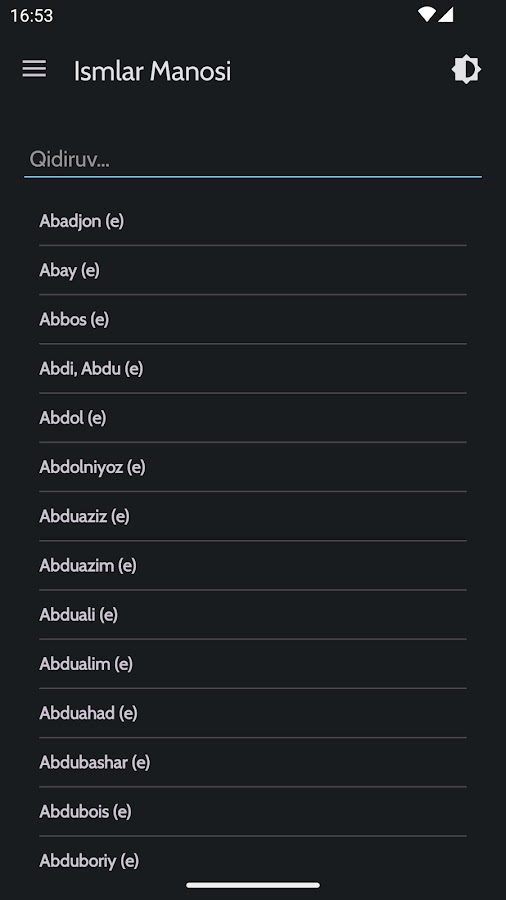 Ilovada 14 mingdan ortiq ismlar va ularning ma’nolari bilan tanishishingiz.