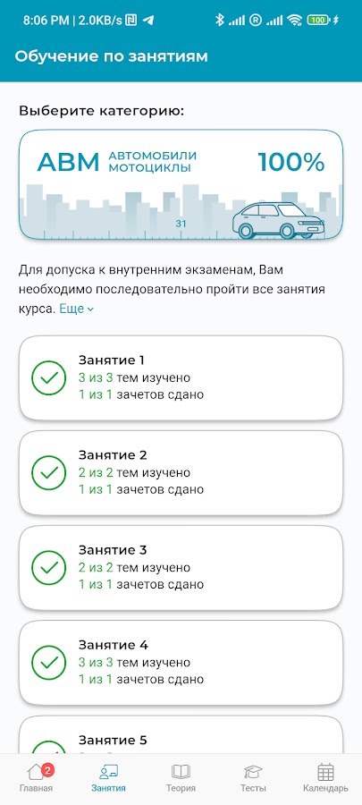 Курс теории включает в себя полный комплект видеоуроков, конспектов по всем темам, различных обучающих и проверочных тестирований — 8 режимов.