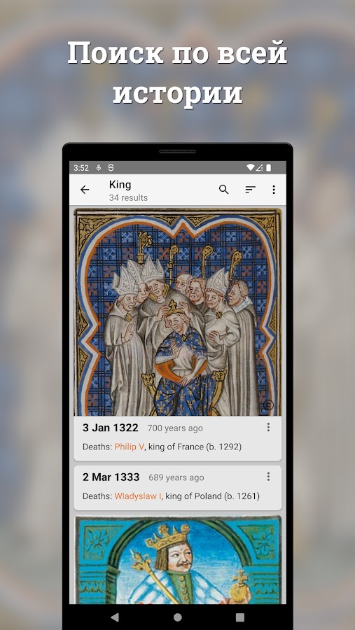 • Избранное: Сохраняйте и упорядочивайте исторические факты, которые вам наиболее интересны, для дальнейшего использования. Вы даже можете добавлять собственные заметки, чтобы создать личную коллекцию.