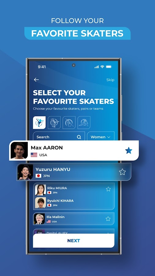 Персонализированный опыт: Выберите любимых фигуристов или дисциплину для получения персонализированных новостей.