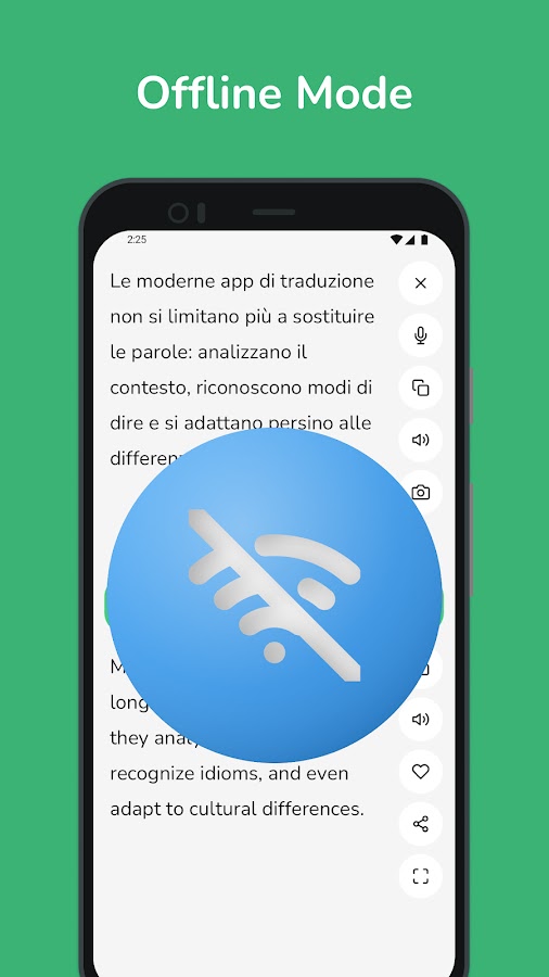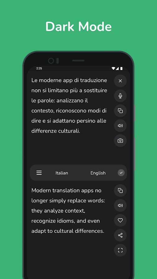 • Мгновенный перевод: получайте быстрые и точные переводы с итальянского на английский и наоборот, идеально подходящие для повседневного использования.