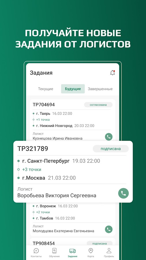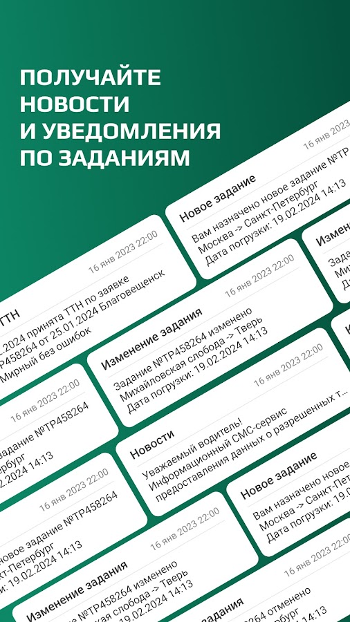 Водитель всегда имеет доступ к актуальной информации о перевозке, что позволяет оперативно реагировать на изменения.