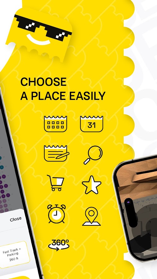 • Удобный выбор билетов по рядам и местам, а также обычных входных билетов