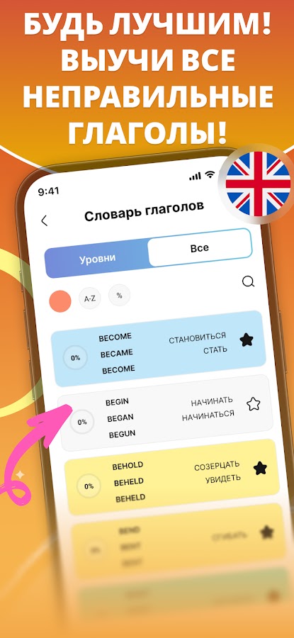 IVERBS — приложение для изучения неправильных глаголов с помощью эффективных тренировок.