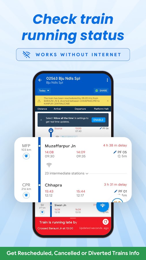 ● Автоматизированные обновления подтверждения PNR и прогнозирование в списке ожидания⏰ Статус движения поезда в реальном времени ● Проверьте статус движения поезда в реальном времени и где находится мой поезд