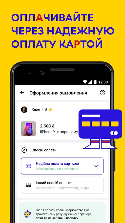 ⚔️ безопасно оплатить картой на сайте: продавец получит деньги только после того, как вы подтвердите получение. А если товар не отправят — вам на карту вернется вся сумма;