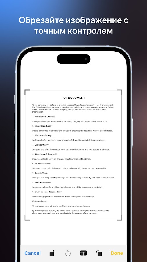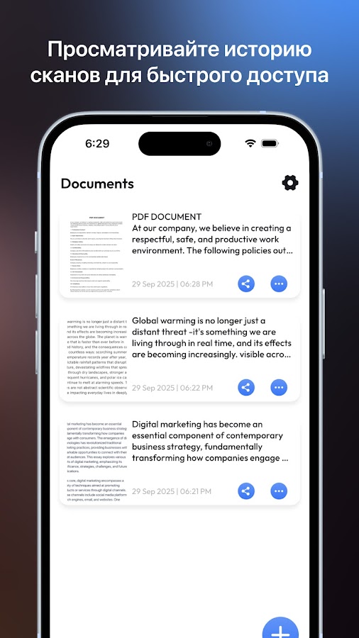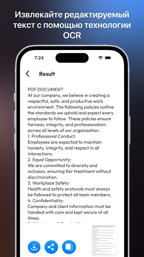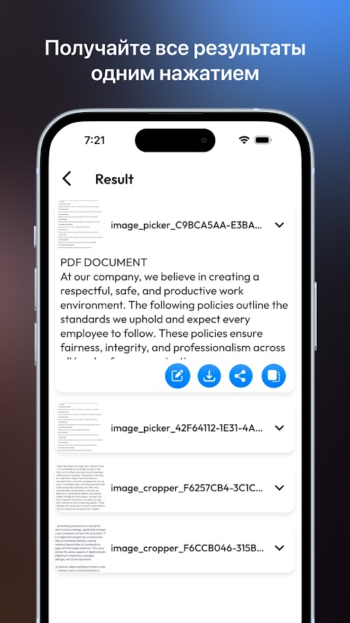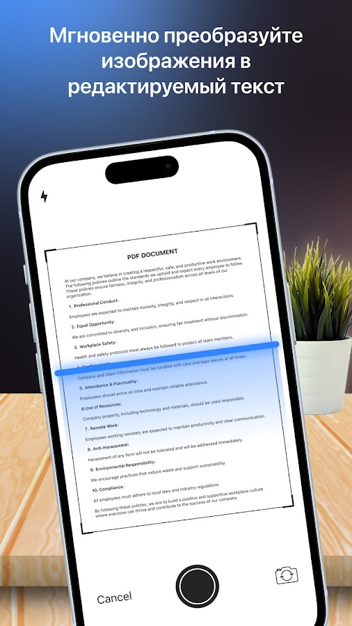 • Экспорт и обмен: Редактируйте отсканированный текст и легко делитесь им по электронной почте, в социальных сетях или других приложениях. Экспортируйте в формате PDF или TXT для удобной интеграции.