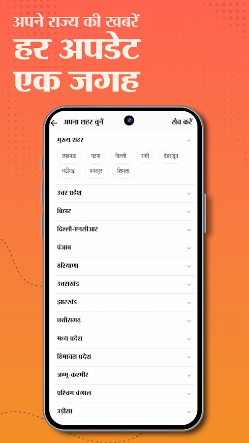 Лучшие штаты: Уттар-Прадеш (यूपी न्यूज़), Бихар (बिहार न्यूज़), член парламента, Дели, Джаркханд, Уттаракханд, Раджастхан, Чхаттисгарх, Харьяна, Пенджаб, Гуджарат, Химачал, Джамму-Кашмир, Западная Бенгалия, Одиша, Махараштра (महाराष्ट्र समाचार).