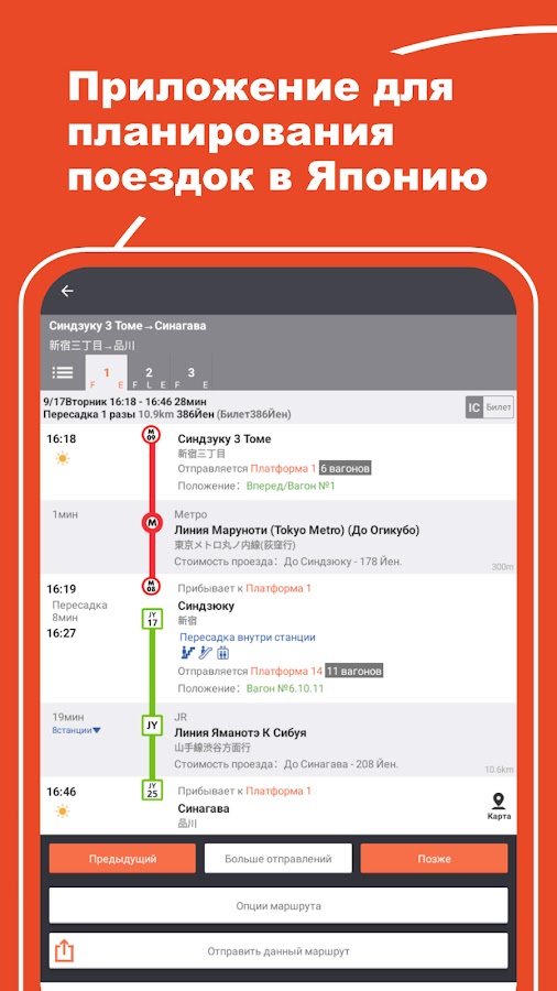 Кроме того, вы можете точно определить требуемое время и время проезда, так как оно содержит расписание всех станций по всей Японии (за исключением некоторых разделов).