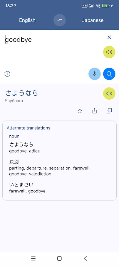 Японский Английский перевод предоставляет переводы между английский и японский языки. Вы можете переводить слова и предложения, помогает изучать языки.
