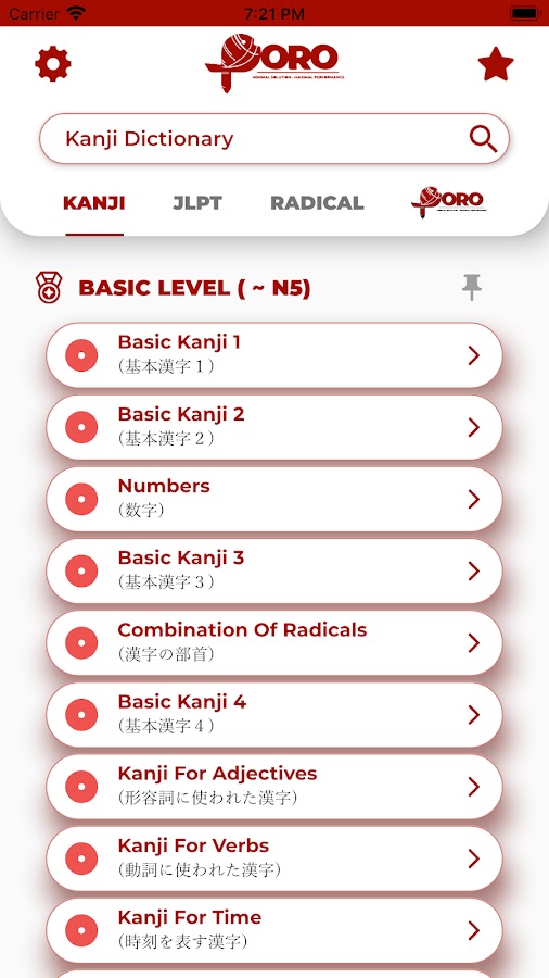 PORO Японские кандзи для всех разработан с целью предоставить вам лучший инструмент для изучения кандзи и подготовки к экзамену JLPT.