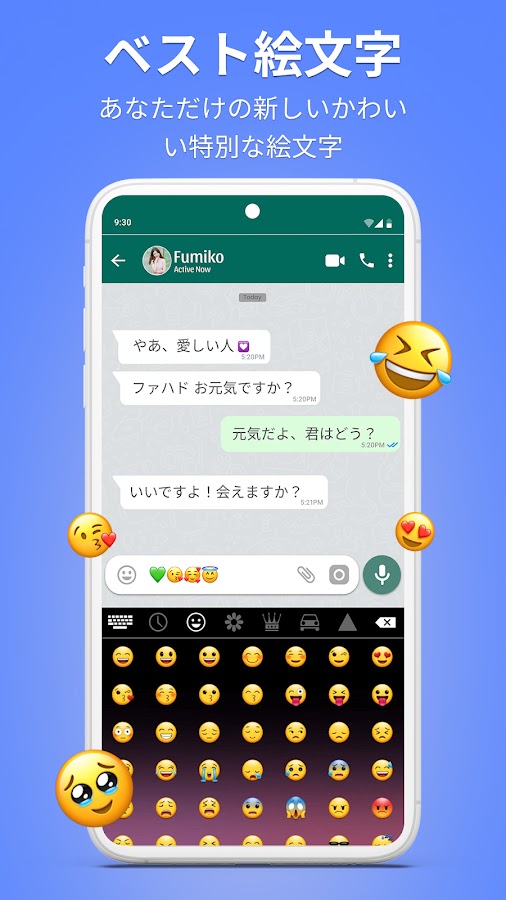 ★ Японская клавиатура: содержит более 1000 эмодзи, стильные наклейки и милые GIF-изображения.