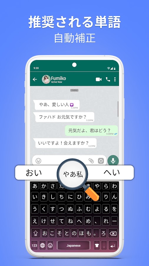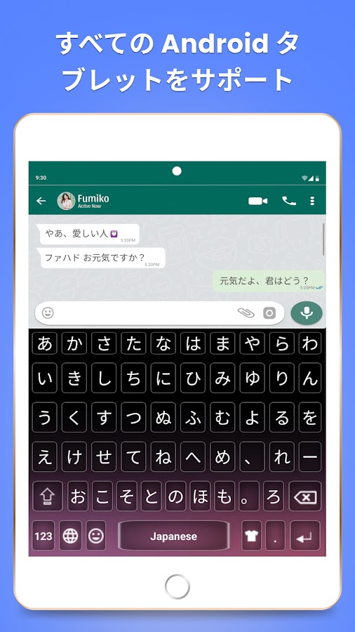 Японская клавиатура — одно из лучших мобильных приложений для набора текста на японском языке. С помощью этой японской клавиатуры вы можете вводить японские слова с яркими темами, отправлять сообщения, электронные письма и обновлять свой статус на японском языке.
