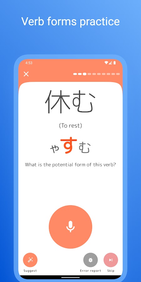 👍 Практика произношения: Предоставляет упражнения для отработки произношения с подсказками по акценту, помогая вам говорить по-японски более естественно.