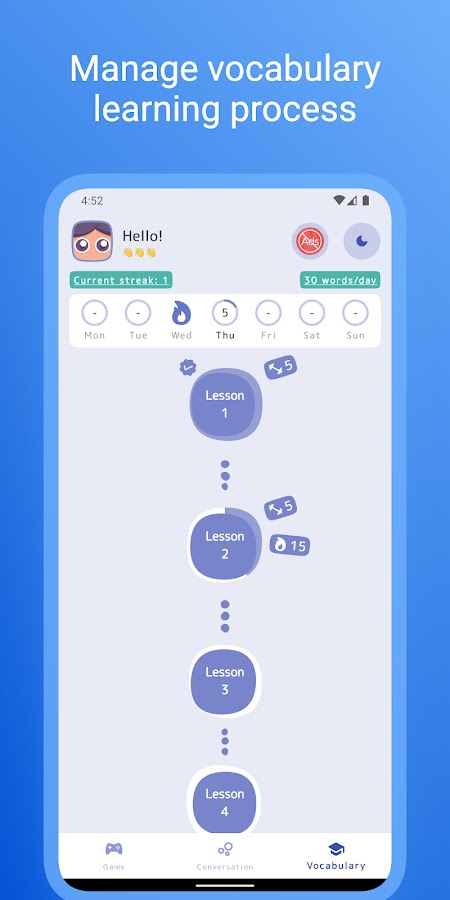 👍 Интуитивно понятный интерфейс: Простой в использовании дизайн помогает легко отслеживать ваш прогресс в обучении.
