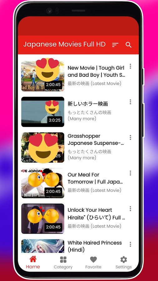 В этом приложении мы предлагаем вам много новых, суперхитов, боевиков, драм, комедий, фильмов о любви на японском языке.
