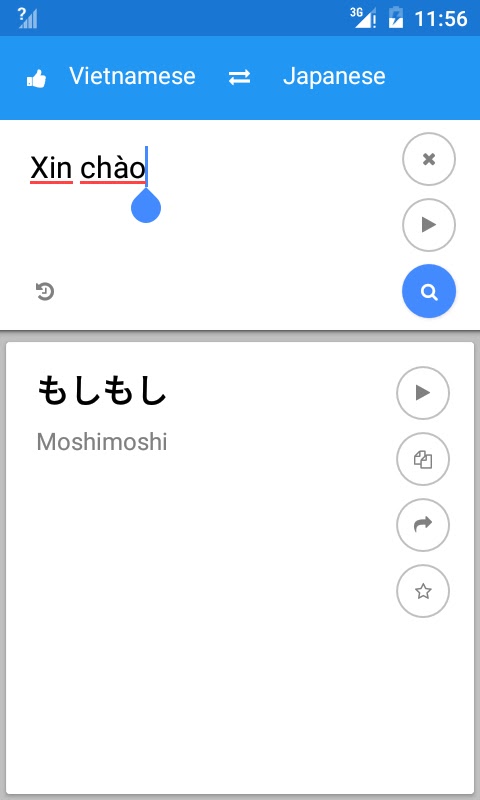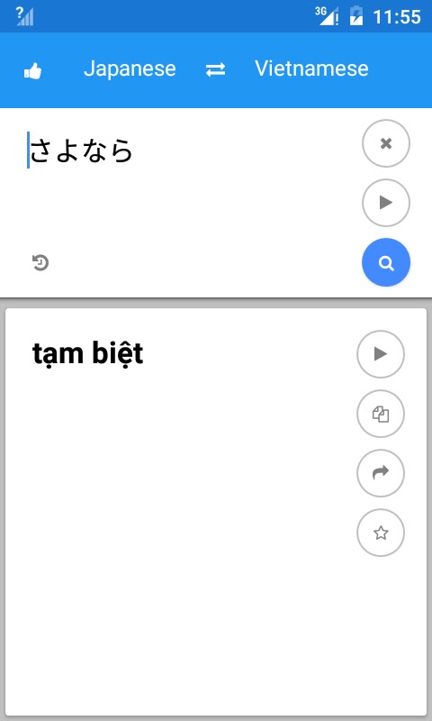 • Перевести между японской и Вьетнамская путем ввести фразу и предложение, или вставлять содержимое буфера обмена.